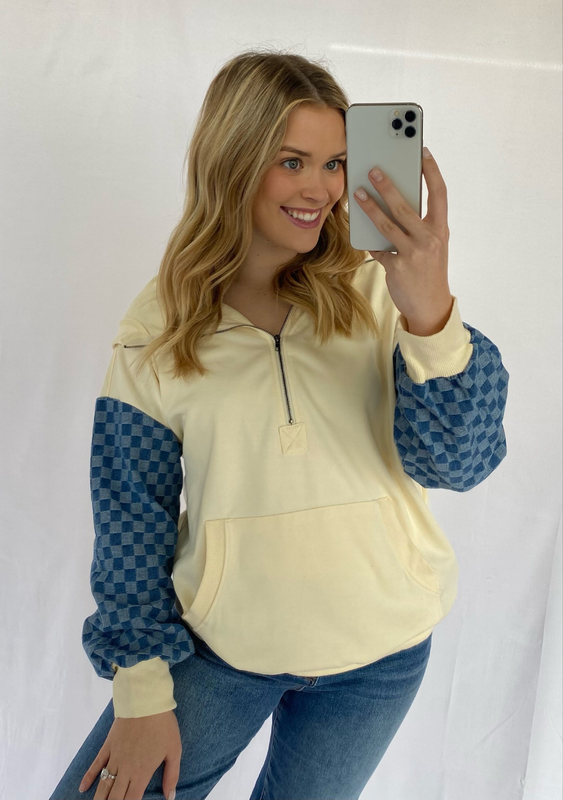 Denim Checker Quarter Zip