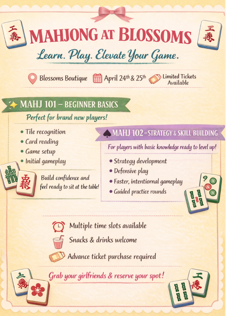 Mahjong 102 builds on the foundation learned in 101. This class focuses on: