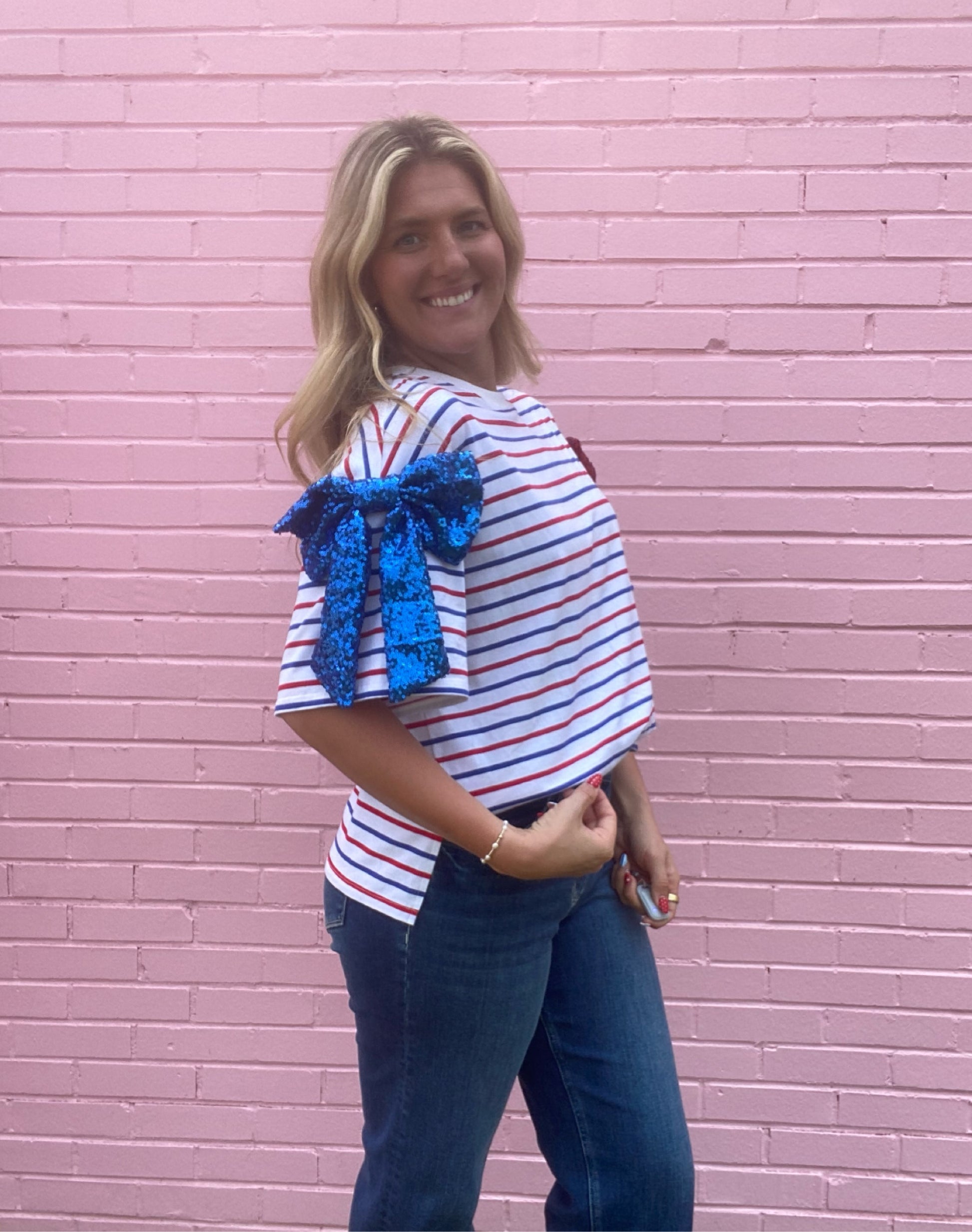 Red, White, and Blue Stripe Shirt w/ Bow Detail