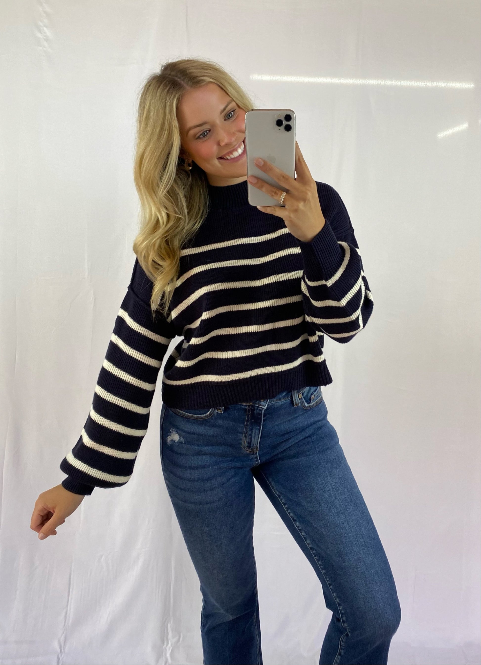 Effortless style meets cozy comfort! This soft knit sweater features a relaxed drop shoulder design and classic stripes, making it perfect for layering or wearing on its own. Pair it with jeans or leggings for a laid-back look, or dress it up with skirts and boots for a chic, everyday outfit.